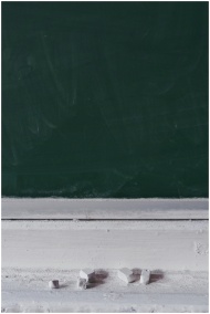 A dusty blackboard with chalk pieces, ideal for ed