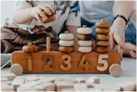 A child and adult playing with wooden number toys, enhancing learning and coordination skills.