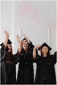Three young women celebrating graduation by throwi