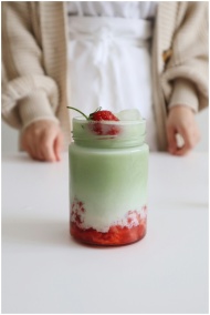 Delicious homemade strawberry matcha latte with ic