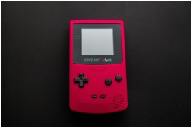 Close-up of a red Nintendo Game Boy Color on a dark backdrop, showcasing retro gaming nostalgia.