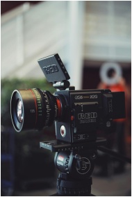 Close-up of a RED Raven video camera on a tripod,