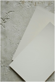 Two blank papers placed diagonally on a textured concrete surface, ideal for design mockups.
