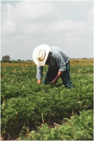 A dedicated farmer working in a lush green field d