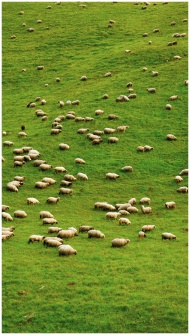 Sheep grazing on a lush green hillside, showcasing rural tranquility and natural beauty.