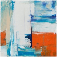 Dynamic abstract painting featuring bold colors and textures on canvas.