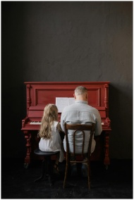 Elderly man and young girl bonding over music while playing piano indoors