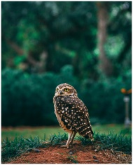 A detailed photo capturing a Burrowing Owl on natural habitat in Brazil.