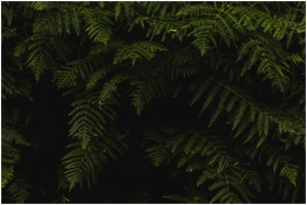 Close-up view of lush green fern leaves creating a