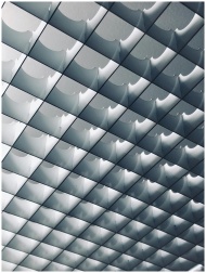 Abstract metallic ceiling design with geometric pa