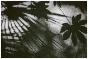 Artistic grayscale image showcasing the shadows of tropical plant foliage with a vintage feel.
