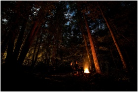 Serene night camping by a crackling fire amid the trees in Tapoco, NC.