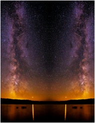 Breathtaking view of the Milky Way galaxy reflecting over a serene lake at night.