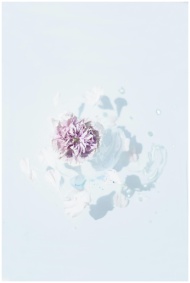 Soft lilac flower floating on a calm, minimalist b