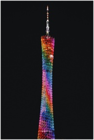 A stunning vertical shot of Canton Tower lit with