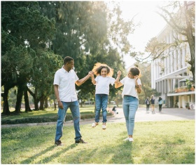 Joyful family enjoying a playful day at the park,