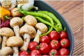 A close-up of various fresh vegetables and mushroo