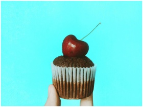 A delicious chocolate cupcake topped with a fresh cherry, perfect for dessert lovers.