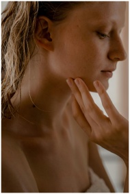 Close-up of a serene woman with long wet hair, emb