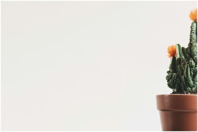 A minimalist shot of a cactus in a pot with orange