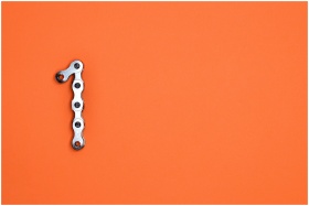 Metal chain forming the number one on an orange ba