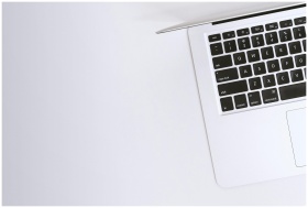 Aerial view of a sleek laptop keyboard on a clean,