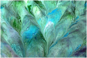 Captivating abstract fluid artwork highlighting vibrant green and blue colors with organic patterns.