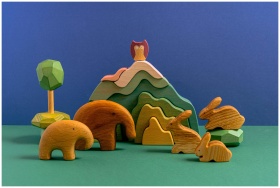 Vibrant collection of wooden animal figurines arra