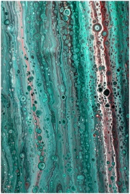 Dynamic abstract art featuring vibrant turquoise,