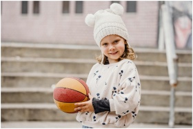 A cheerful child enjoys playing basketball outdoor