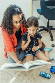 A loving mother and daughter enjoy a bonding time reading a book at home.