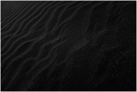Textured black sand with ripples resembling dunes,
