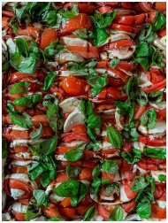 Mouthwatering Caprese salad with ripe tomatoes, basil, mozzarella, and balsamic glaze.