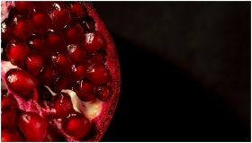 Vibrant close-up of ripe, juicy pomegranate seeds,