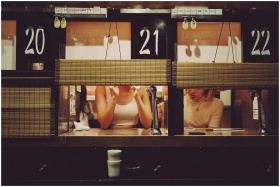 Intimate dining experience at a ramen restaurant in Shibuya, Tokyo with individual booths.