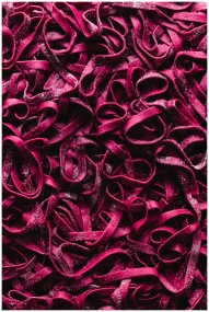 Flat lay shot of tangled vibrant pink ribbons for