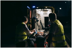 Paramedics providing medical care to a patient at