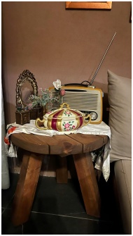 A cozy vignette with a vintage radio and floral de