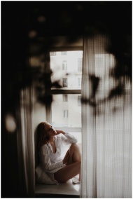 A woman sits thoughtfully by a window, bathed in soft light and shadows.