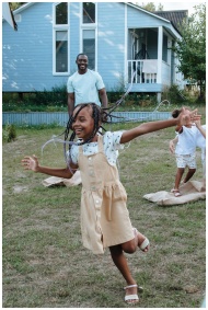 Children enjoy a playful day outdoors in a backyard, celebrating joy and togetherness.