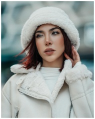 Elegant woman in winter attire posing outdoors in