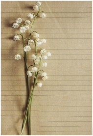 Delicate lily of the valley flowers arranged on textured paper, showcasing elegance and natural beauty.