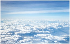 Scenic aerial view of fluffy clouds and serene blue sky, offering a tranquil and dreamy atmosphere.
