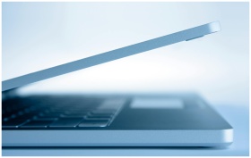 Profile view of a sleek modern laptop in a minimal