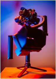Close-up of a professional videography setup with a camera mounted on a gimbal, showcasing advanced equipment.