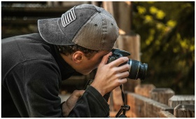 Close-up of a young male photographer taking photo
