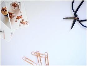 A clean and organized workspace with scissors, pap