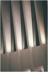 Abstract view of modern interior architecture with vertical beams in New York.