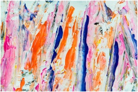 Dynamic abstract artwork featuring bold colors and brush strokes.