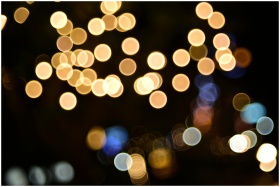 A vibrant display of abstract bokeh lights against a dark background, creating a warm and festive ambiance.